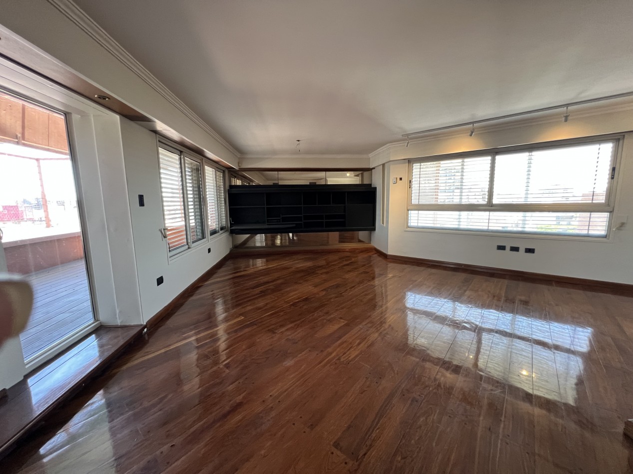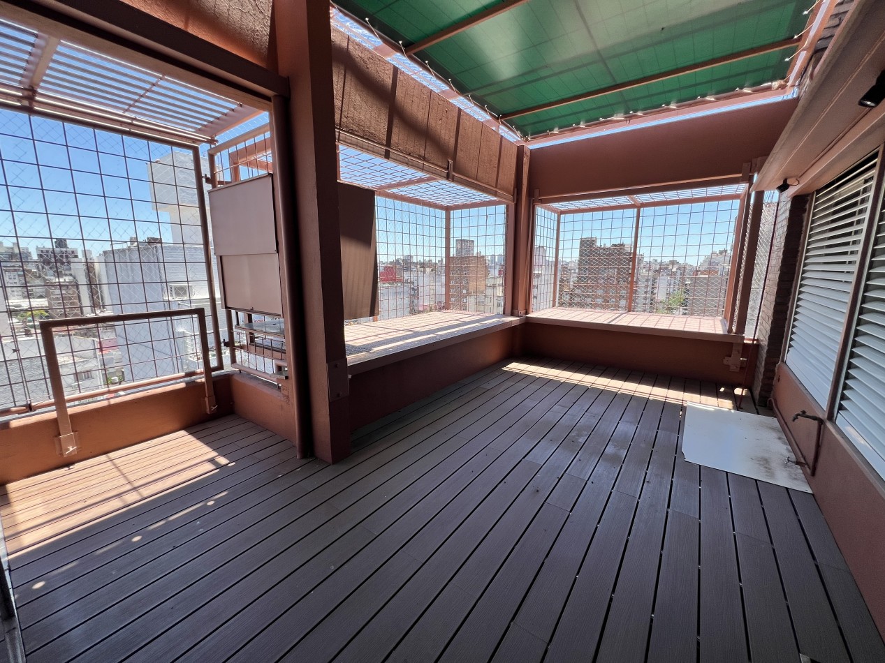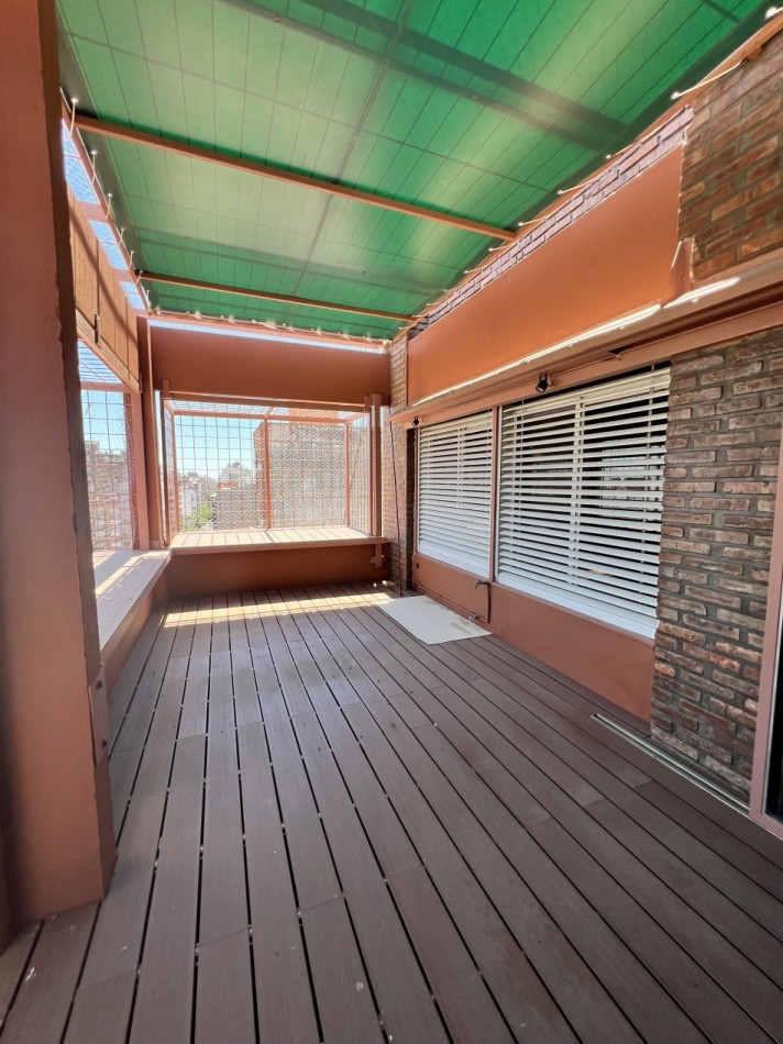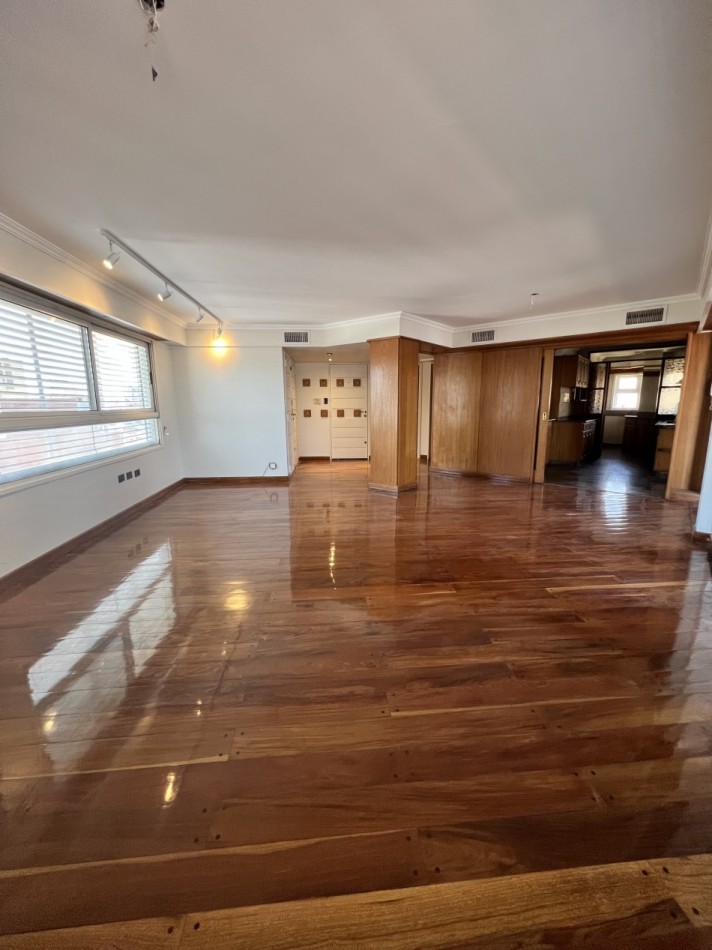 Ingreso desde los ascensores directamente al living (pisos de lapacho en excelente estado) donde se encuentra un toilette y un armario para visitas. Cocina semi integrada, la cual se puede separar por medio de unas puertas corredizas, está totalmente equipada con bajo mesada y alacenas, espacio sectorizado de cocción para evitar olores y humos. Pisos y mesadas de granito. Comedor diario con salida al balcón y al patio con parrillero. El patio tiene un techo cubierto con lona de alto impacto corredizo, todos los espacios al aire libre tienen rejas. Lavadero independiente con terraza de secado, este mismo se conecta desde el intimo y desde la cocina.