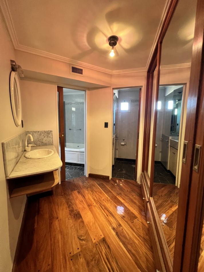 Ingresando al intimo nos distribuye a tres dormitorios, uno con amplio placard empotrado con espejos y baño en suite en tres tiempos. Los otros dos dormitorios con placares y muebles de guardados hechos a medida comparten otro baño completo.