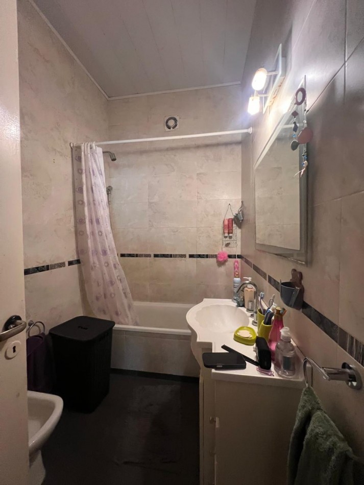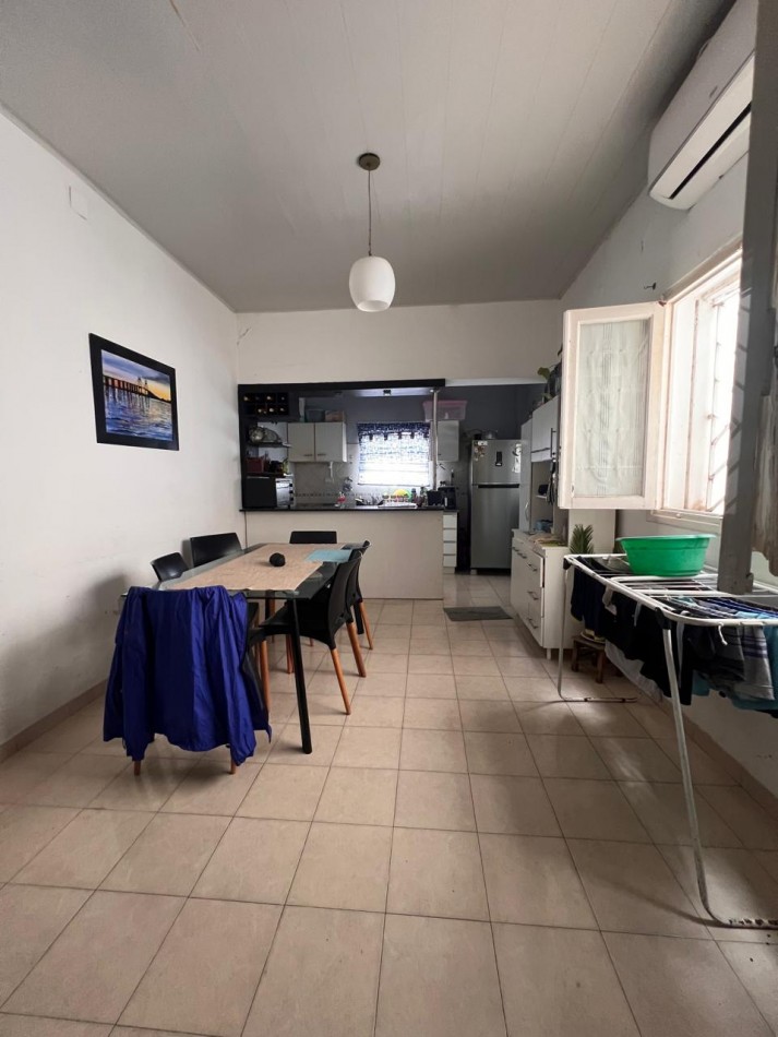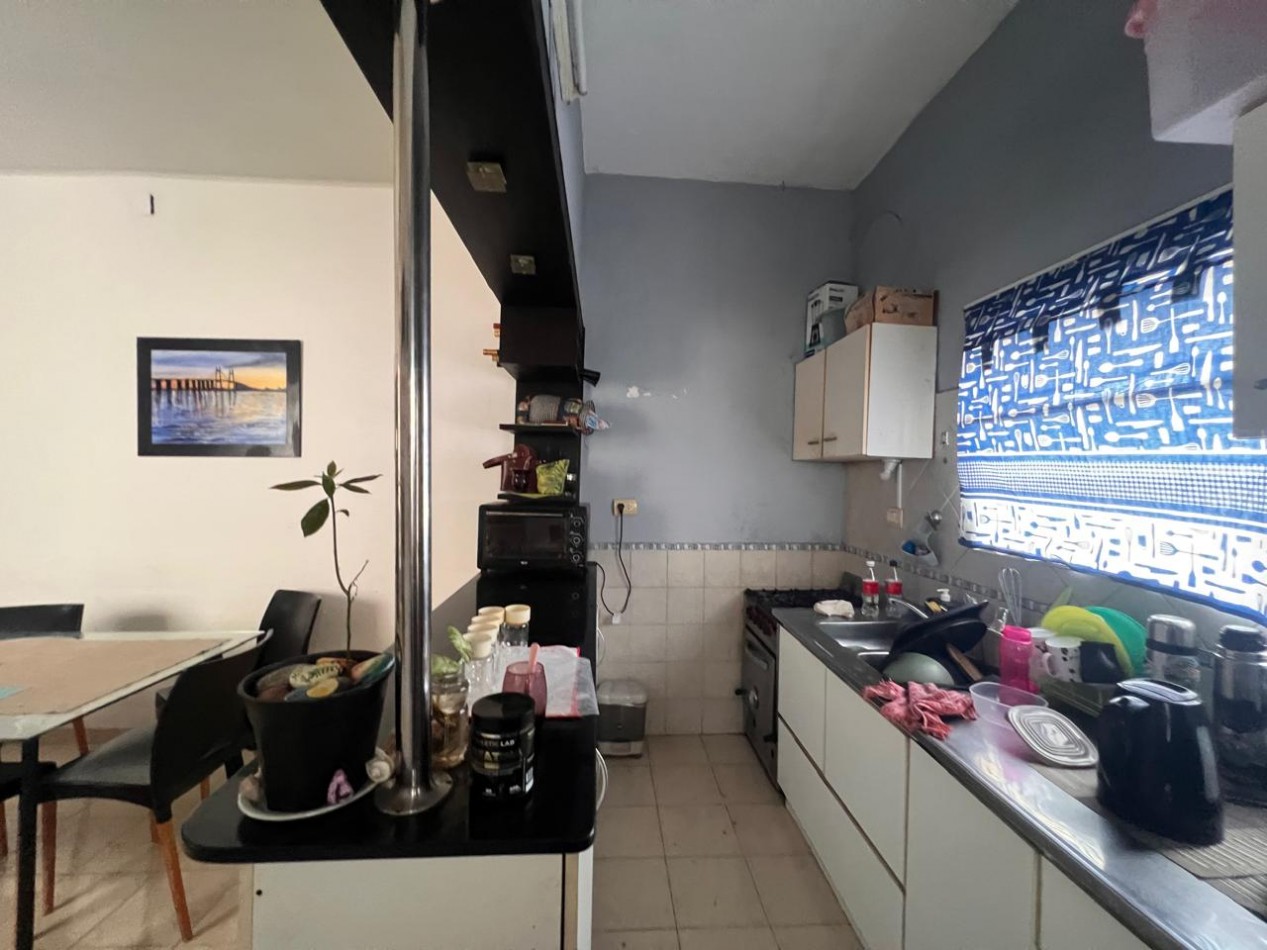 Amplio living comedor (calefactor instalado y funcionando perfectamente) integrado a una cocina totalmente equipada. Ventilación cruzada.