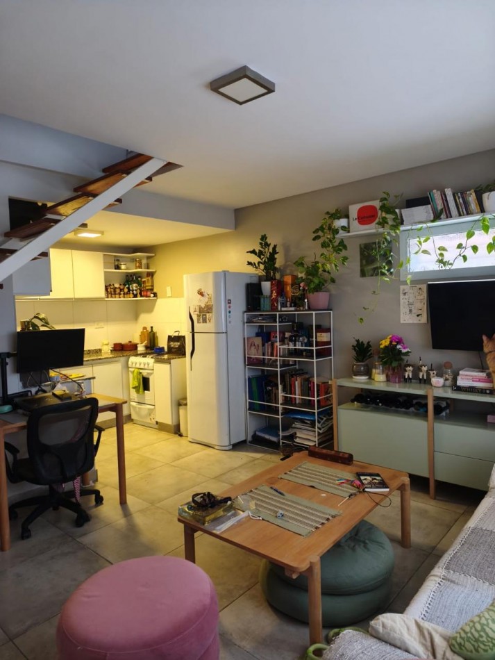 Duplex de 1 dormitorio interno ubicado en primer y segundo piso. La planta baja cuanta con cocina equipada con alacenas y bajo mesada, living comedor. Planta alta se encuentra un ante baño y baño completo. Muy luminoso. En la planta baja de edificio bajo se encuentra la cochera. El edificio tiene unos diez años de antiguedad y esta listo para transferir.