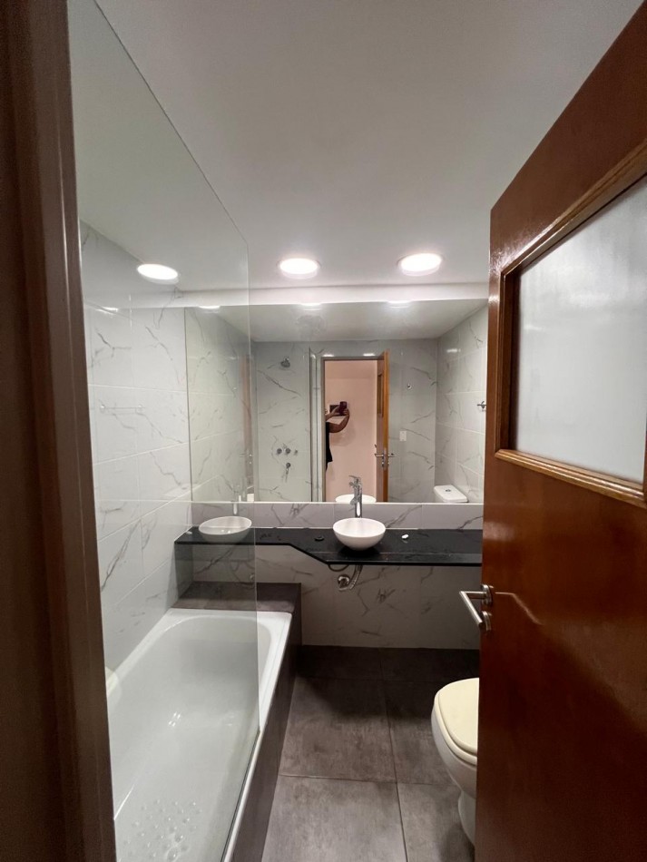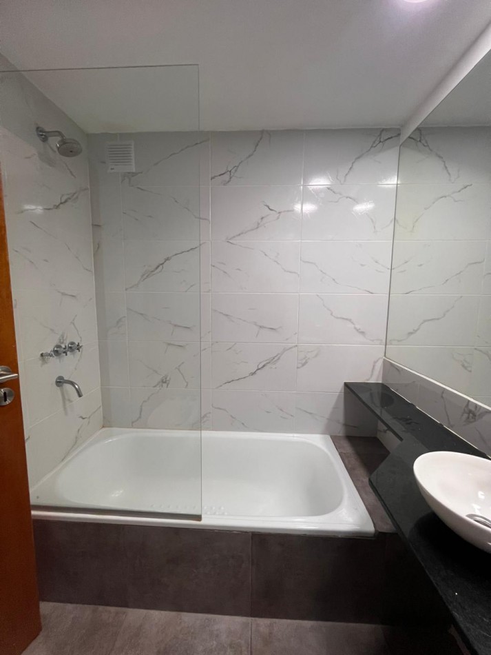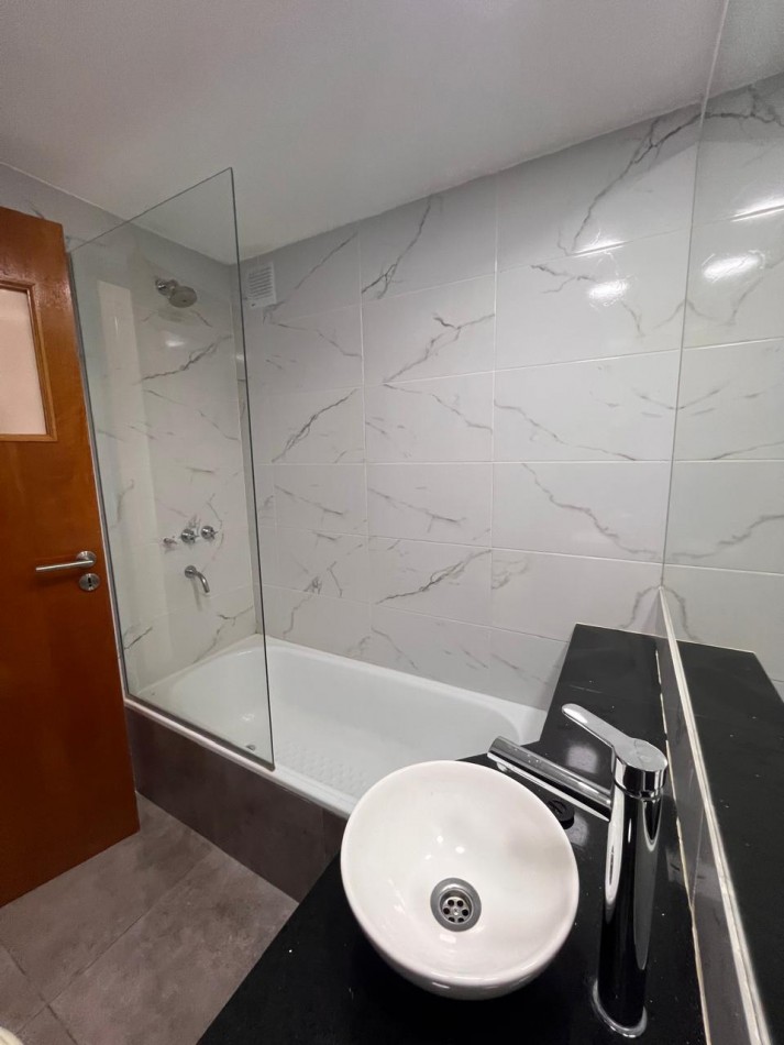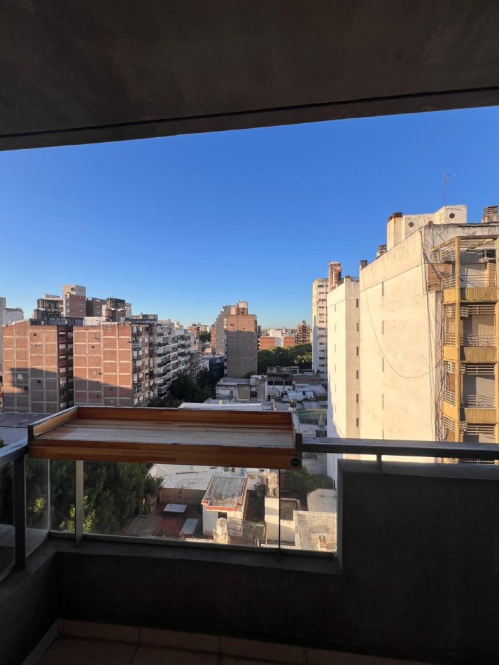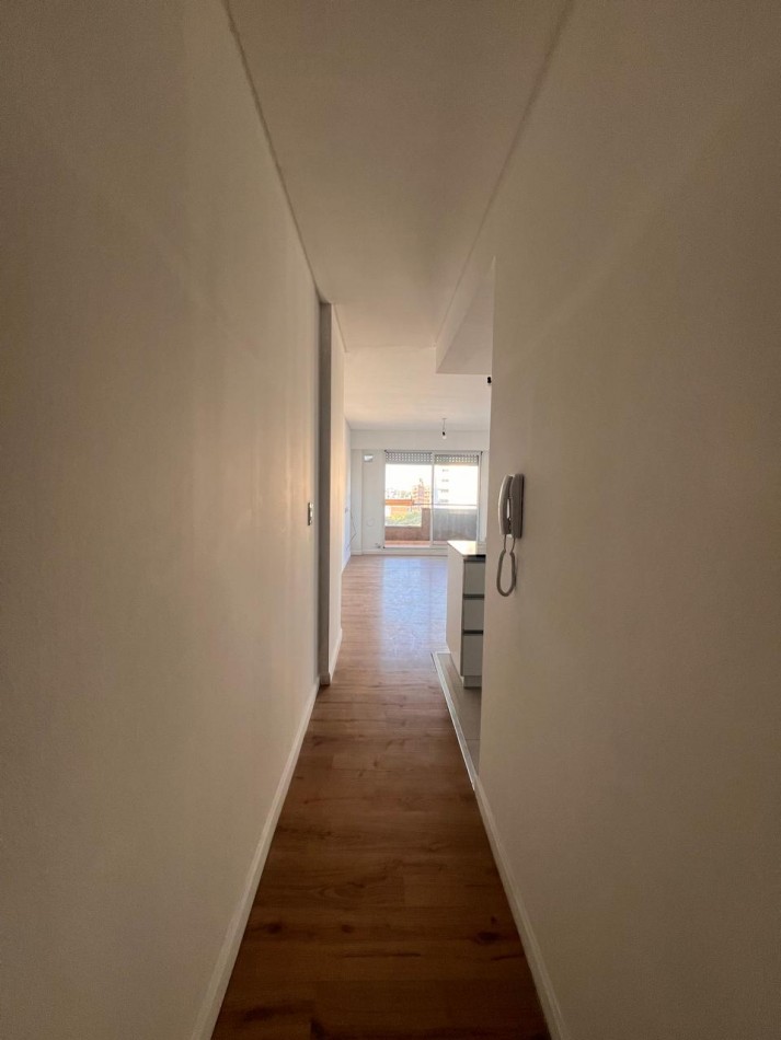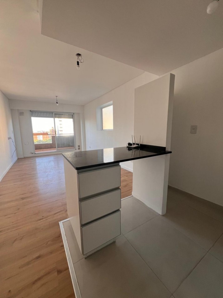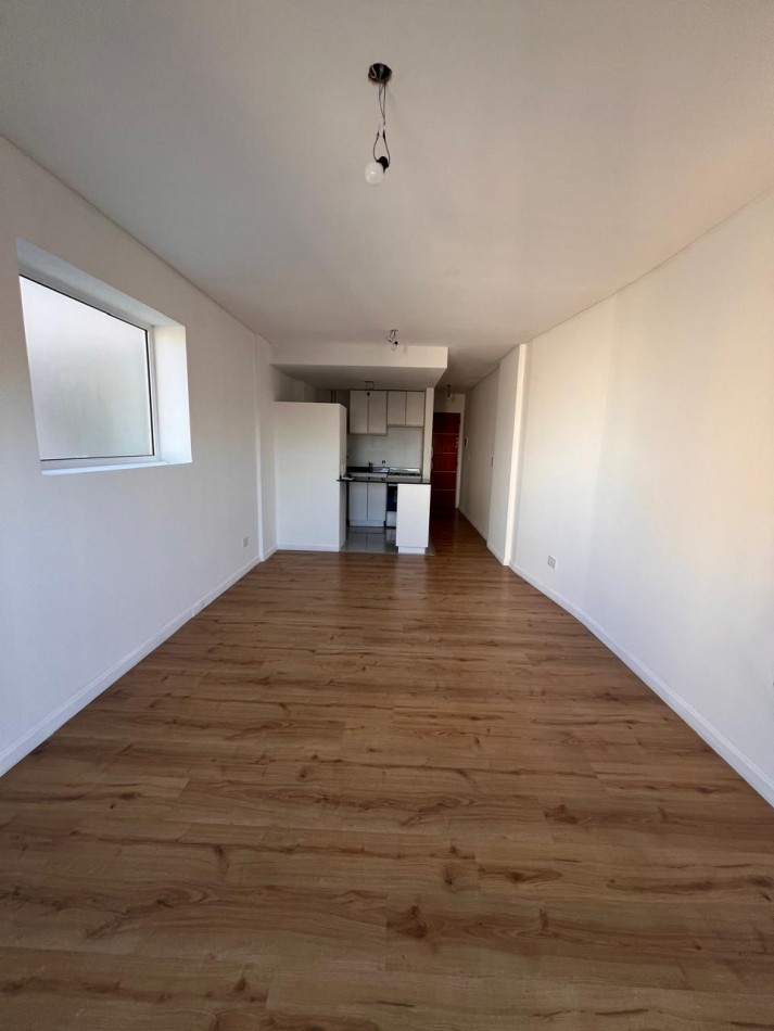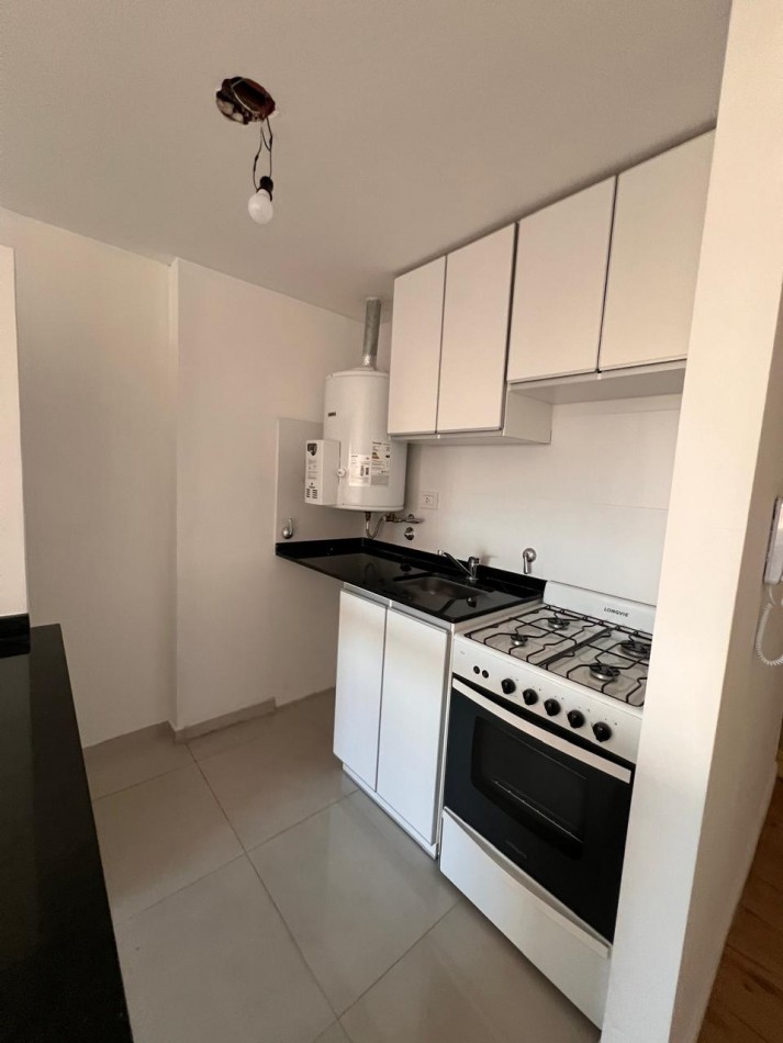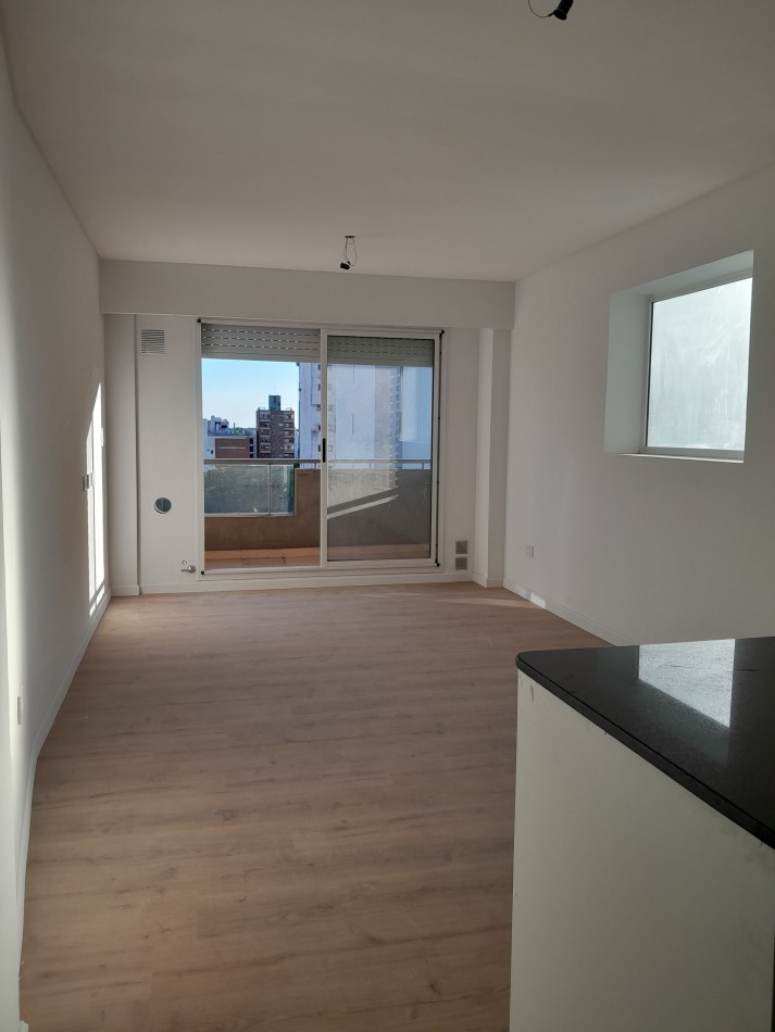 Cocina equipada y espacio oculto para la heladera, ambiente único comodo y muy luminoso. Persianas electricas. Edificio con gas instalado.