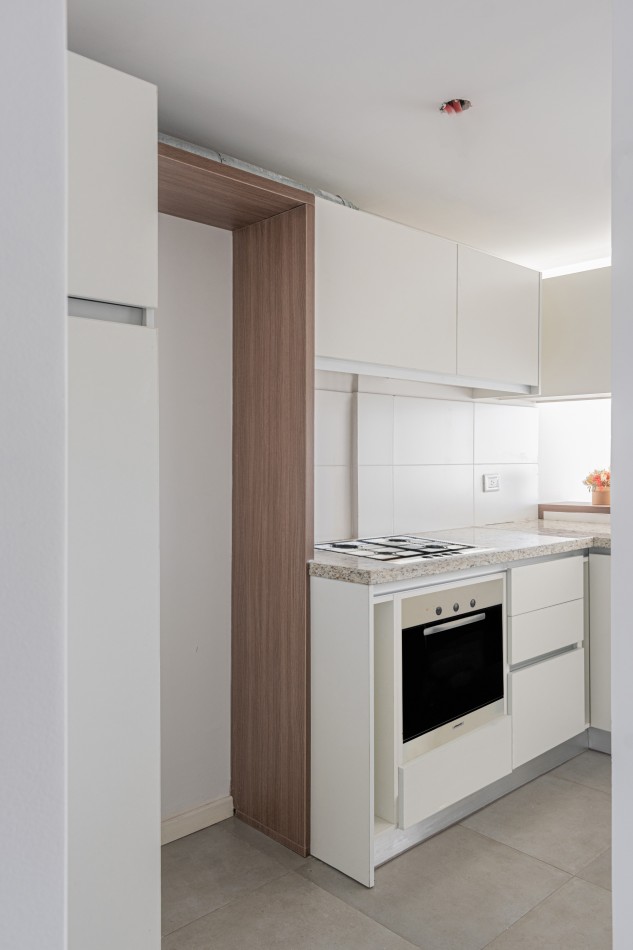 Departamento de 1 dormitorio de 63 m2 exclusivos. Cocina integrada y equipada separada del living por una barra. Baño completo y luminoso. Dormitorio al contrafrente con vestidor. Balcón al frente.